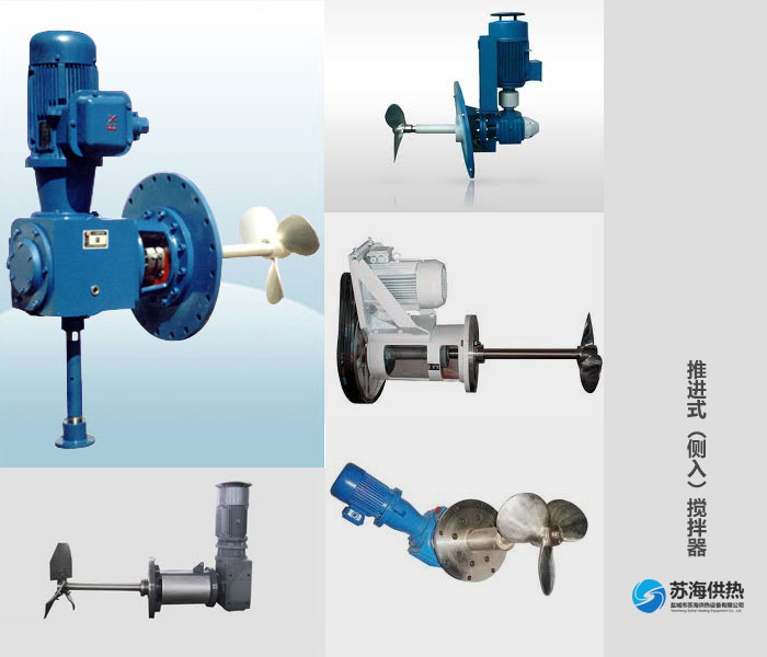 側入式攪拌機是將攪拌裝置安裝在設備筒體的側壁上,攪拌機上的攪拌器通常采用軸流型,以推進式攪拌器為多,在消耗同等功率情況下,能得到好的攪拌效果,功率消耗僅為頂攪拌的1/3~2/3,成本僅為頂攪拌的1/4~1/3。轉速可在200~750r/min。